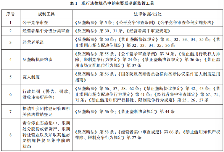 (一)反垄断监管工具的规范基础
