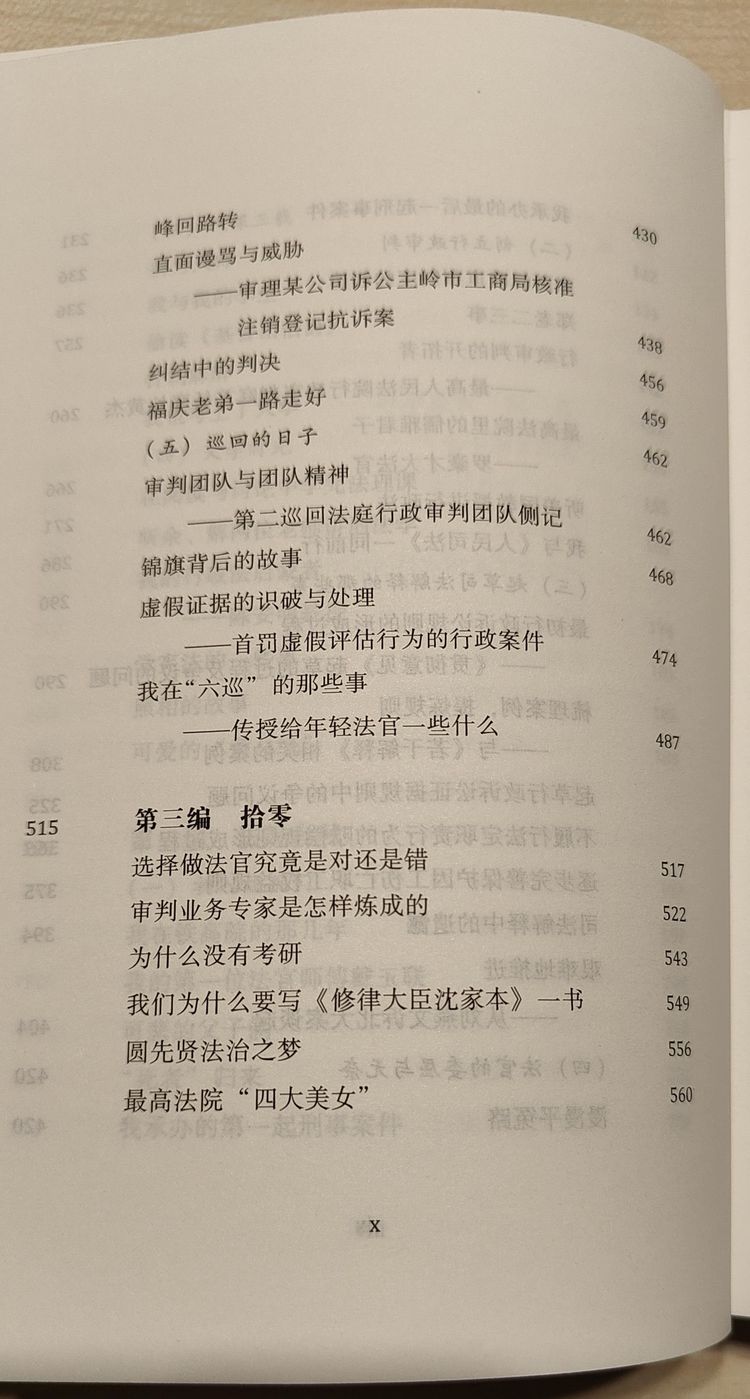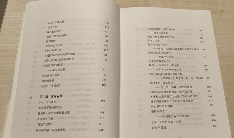 1983年大学毕业到退休,我都在法院系统工作,也就是说,将30多个春秋都奉献给了法院,故第二编定名为:法院春秋。到法院系统工作的前四年,是在铁路运输高级法院工作,当时正赶上“严打”,这四年先做的了两年半的书记员,后转为助理审判员,大多数时间都在刑庭审理案件,太了解法官们的甜酸苦辣,从老法官们那里感受到他们吃苦耐劳和严谨细致的工作作风,同时也发现他们缺乏系统的法律专业知识,只重视经验,忽视法学理论,法律专业毕业生与他们在思维上有很大的差异,对同一案件有不同的观念分歧。这四年可以说是刚入法院门,对法院工作仅仅是初步了解,故将有关反映这四年的随笔文章的小标题定名为:刚入法院门。1987年7月我调到最高法研究室后,就进入了行政法研究小组,开始研究有关行政诉讼制度,后参与了行政审判庭(以下简称行政庭)的筹备工作,1988年10月4日,最高法行政庭成立,我就成为行政庭的成员之一,从此在行政庭一直干到退休。期间经历了行政诉审判制度的初创直至初步完善的全过程,参加了一些重大行政案件的审理工作,参与了有关行政诉讼的司法解释起草工作,体会到行政法官的委屈与无奈。退休后,最高法二巡、六巡先后三年返聘我做行政审判工作。这段经历命名为:行政审判,共写了17篇随笔文章,讲述了行政审判工作在风雨中前行的故事和对我国法治建设的贡献以及我的感悟。从而反应出行政审判从无到有,逐步推进与发展的艰难过程。